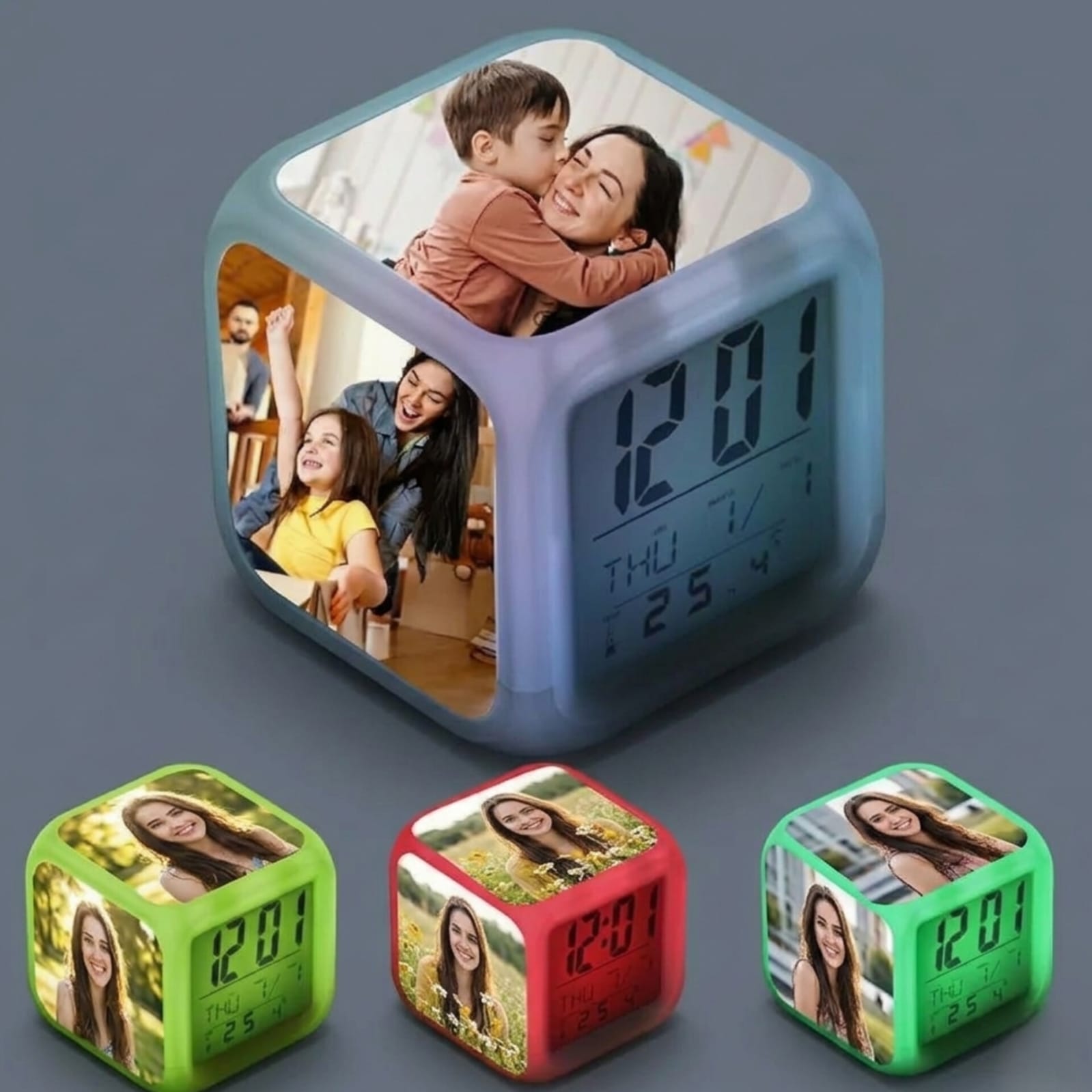 This LED digital table clock with custom photos displays your favourite pictures along with a clear digital time display, making it both stylish and functional.