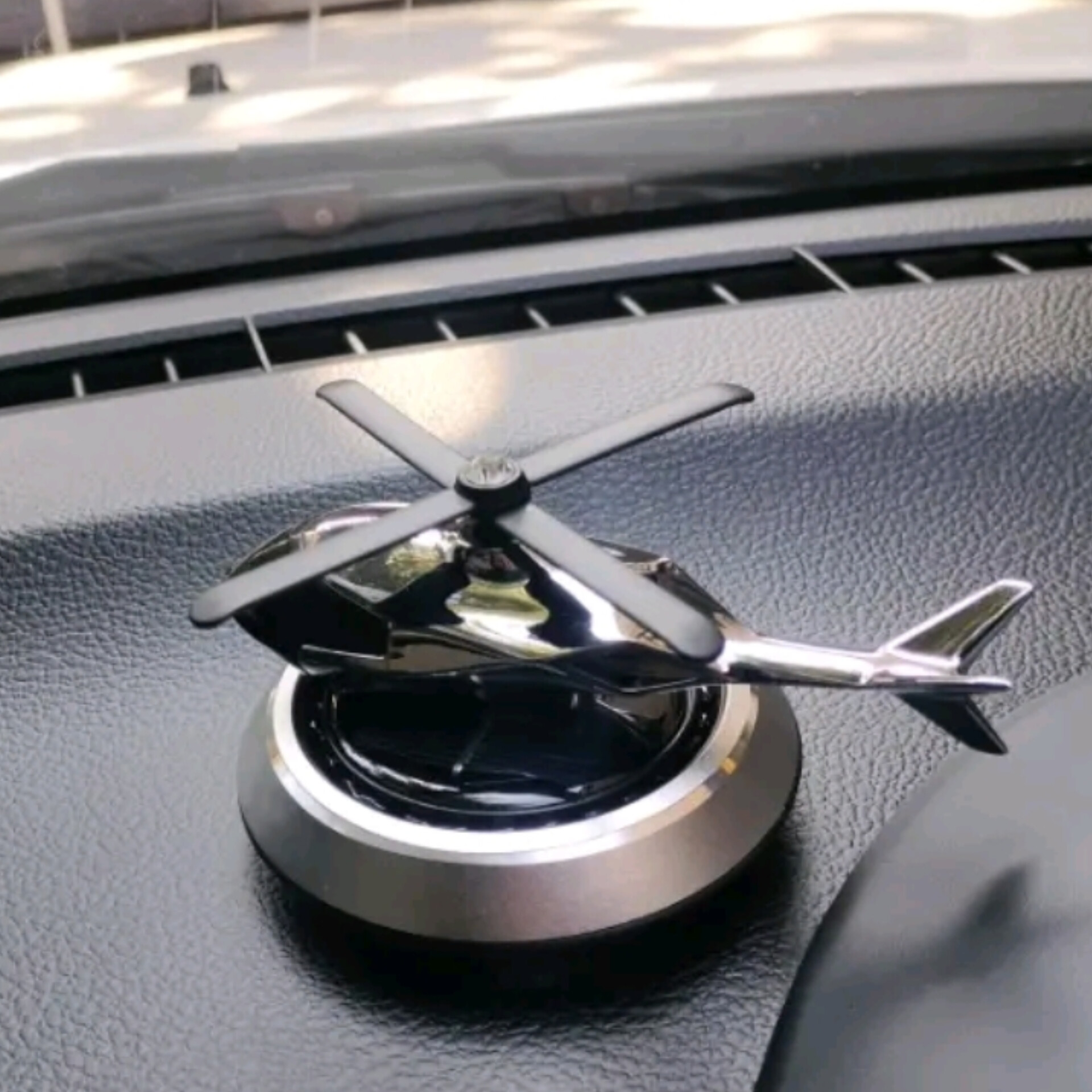 This solar-powered car air freshener features a unique helicopter design with rotating blades that spin when exposed to sunlight. It helps spread fragrance evenly while adding a modern decorative touch to your car dashboard.